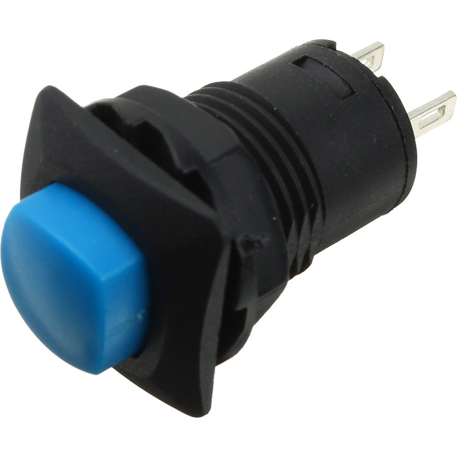Кнопка 10*15мм квадратная синяя, с фиксацией, гайка, с фиксацией