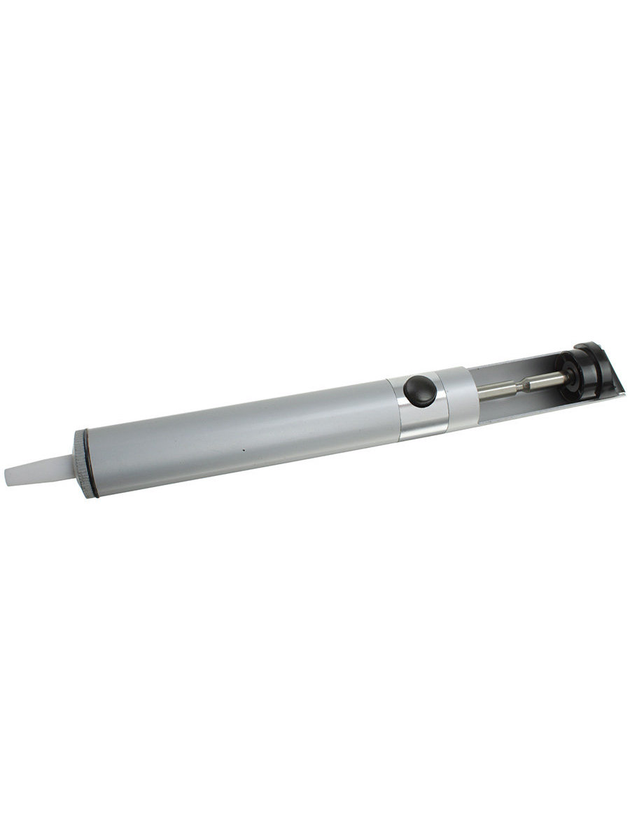 Металлический вакуумный оловоотсос ZD - 193 предназначен для удаления припоя (олова) во время демонтажа и пайки компонентов, Удобное расположение спусковой кнопки, обеспечивает возможность работать одной рукой. Оснащен фиксируемым пружинящим поршнем и тефлоновым носиком.