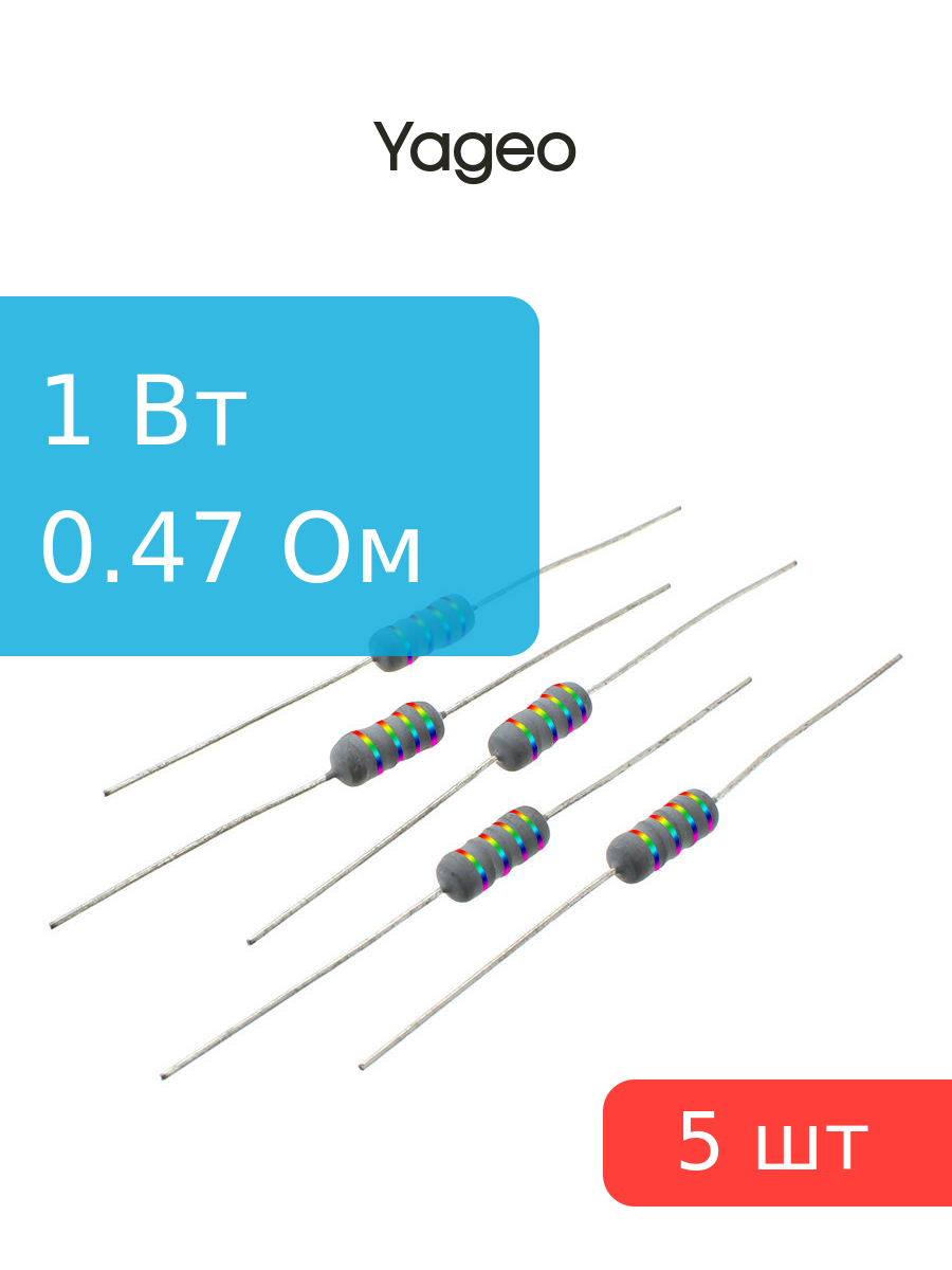 Резистор 0.47Ом 1Вт 5% Yageo KNP100JT-73-0R47 (упаковка 5шт)