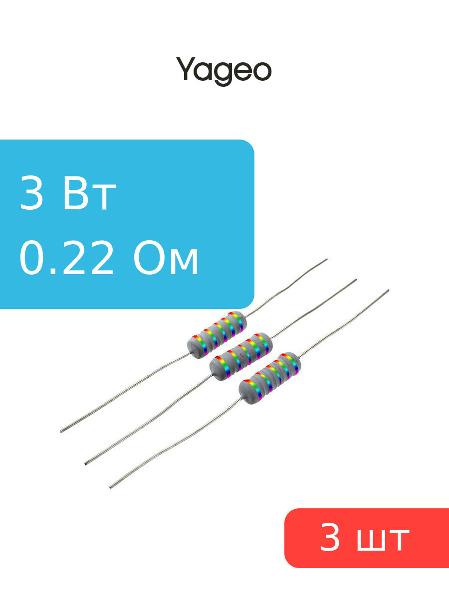 Резистор 0.22Ом 3Вт, Yageo KNP-300JB-73-0R22, постоянный проволочный (упаковка 3шт)
