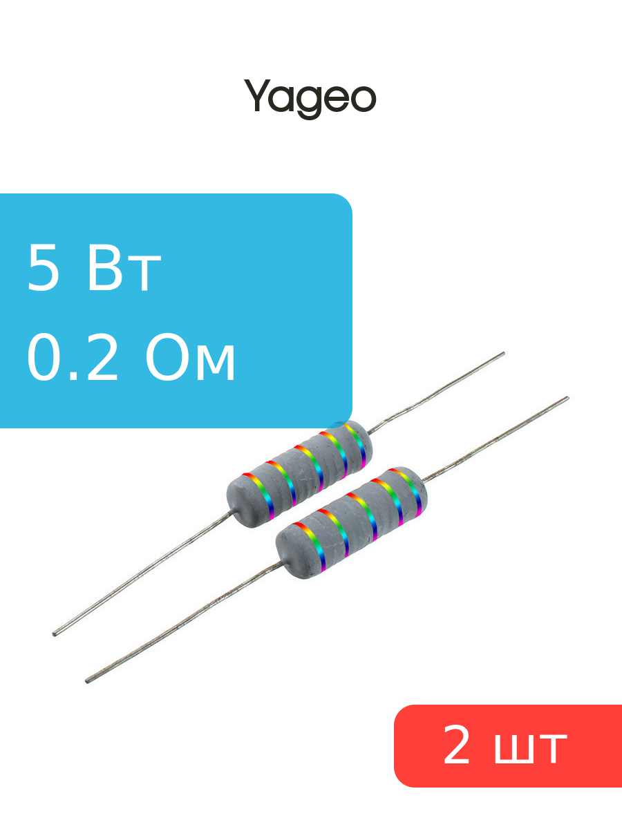 Резистор 0.2Ом 5Вт 5%, Yageo KNP-500JB-91-0R2 (упаковка 2шт) проволочный