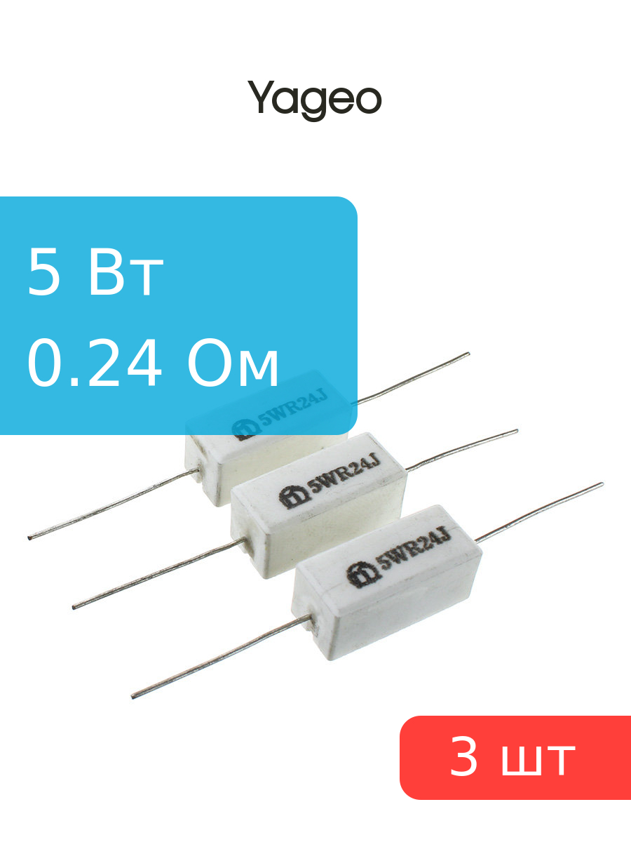 Резистор 0.24Ом 5Вт 5%, Yageo SQP500JB-0R24, (упаковка 3шт) постоянный проволочный
