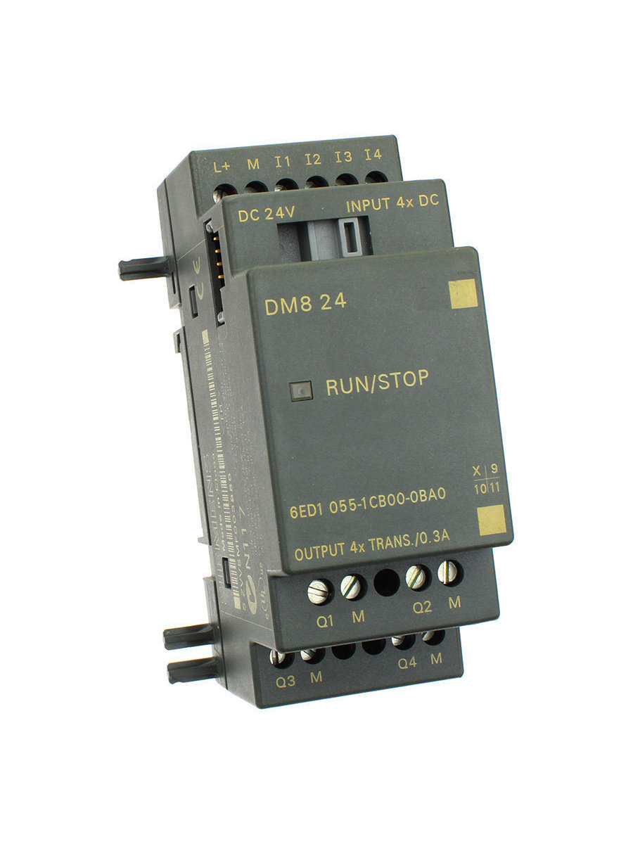 МОДУЛЬ ВВОДА-ВЫВОДА ДИСКРЕТНЫХ СИГНАЛОВ LOGO! DM8 24: ПИТАНИЕ =24В, 4 ВХОДА =24В, 4 ТРАНЗИСТОРНЫХ ВЫХОДА =24В/0.3А, ВНУТРЕННЯЯ ШИНА БЕЗ ГАЛЬВАНИЧЕСКОГО РАЗДЕЛЕНИЯ ЦЕПЕЙ