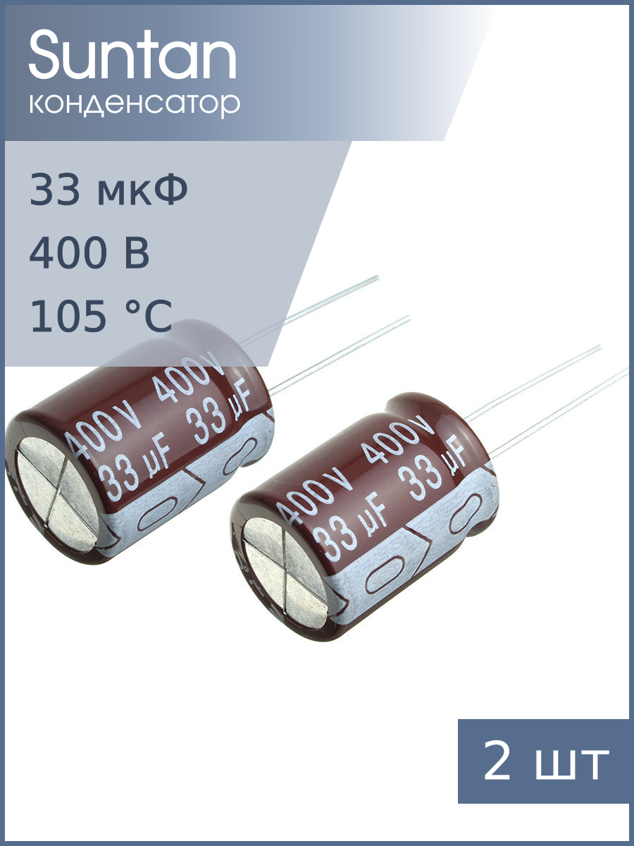 Конденсатор 33мкФ 400В 16*20мм 105С (упаковка 2шт) Suntan TS13D82G330MSB0C0R 540мА 5000час