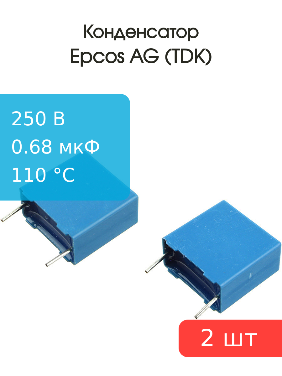 Конденсатор 0.68мкФ 250В vdc / 160Vac 5% (упаковка 2шт) Epcos B32652A3684J К73-17 имп.