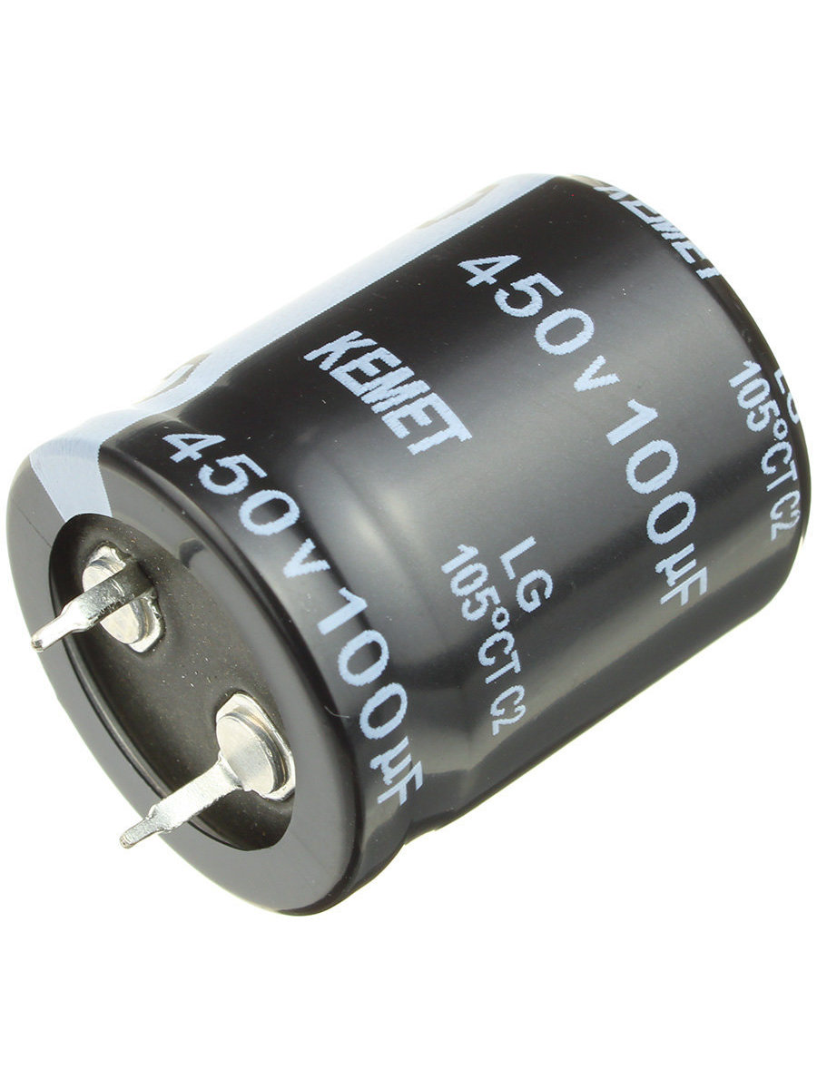 Конденсатор 100мкФ 450В, 25*30мм 105C, Kemet LG450M0100BPF-2530 Snap-in, 600мА, 2000час