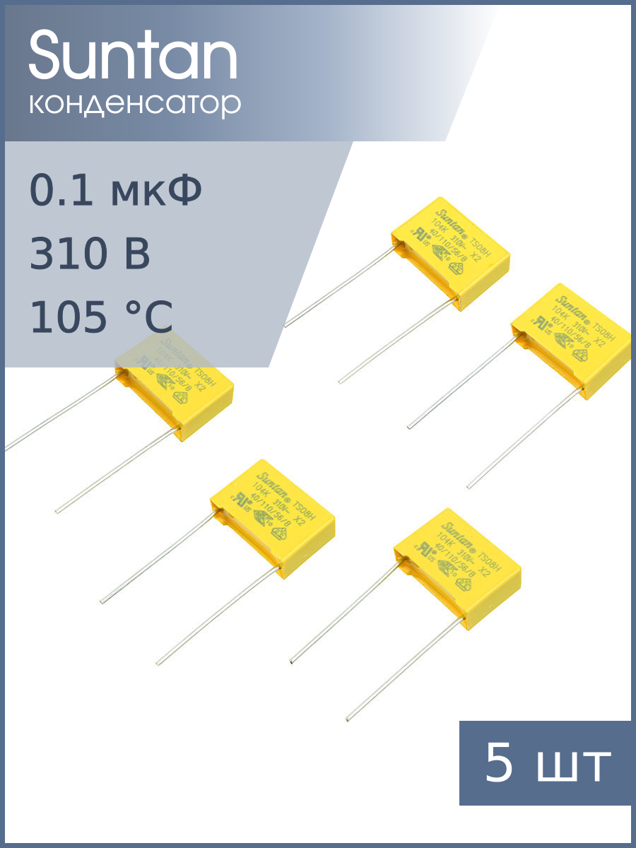 Конденсатор 0.1мкф 310В Vac X2 (упаковка 5шт) Suntan TS08H0A9104KAB0E0R