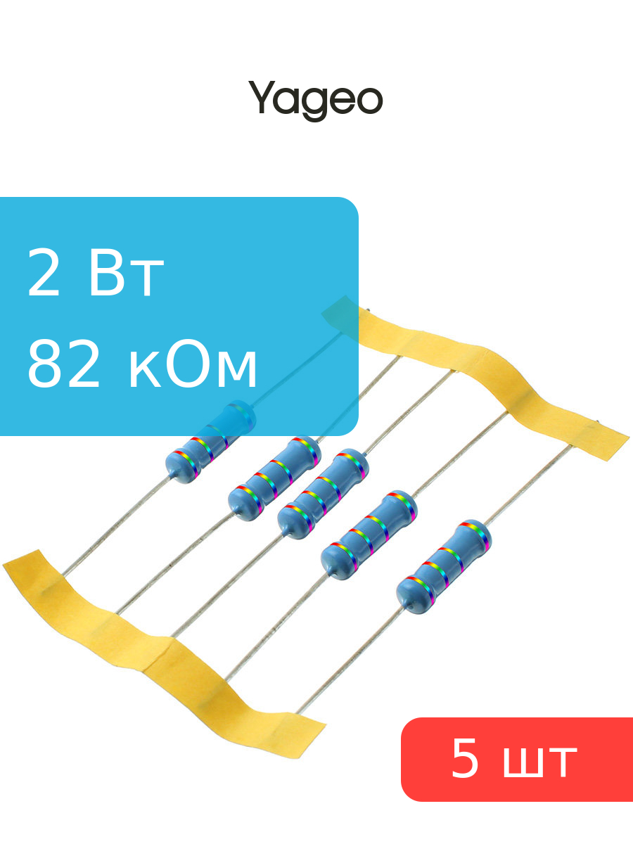 Резистор 82кОм 2Вт 1%, Yageo MFR200FTF73-82K (упаковка 5шт)