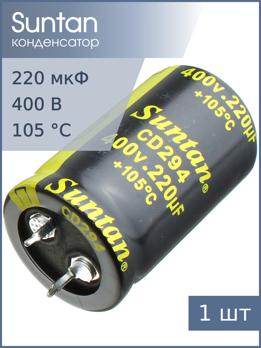 Конденсатор 220мкФ 400В 25*40мм 105C Suntan TS13DR2G221MSB0D0R Snap-in 1000мА 2000час