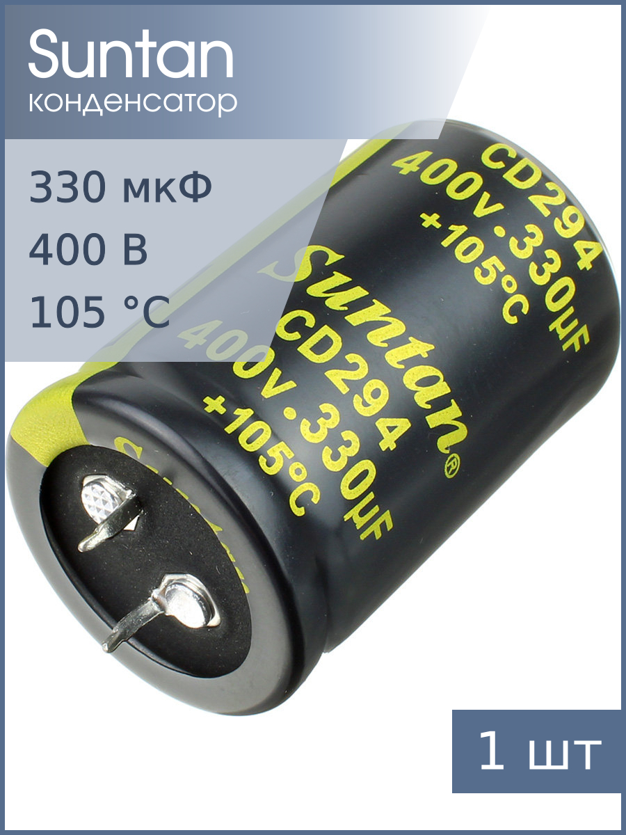 Конденсатор 330мкФ 400В, 30*50мм, 105С, Suntan TS13DR2G331MSB0D0R Snap-in, 1300мА, 2000час