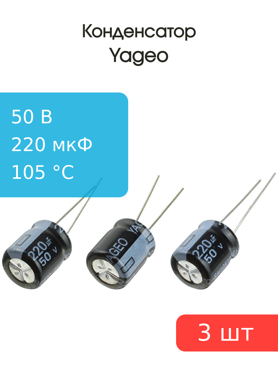 Конденсатор 220мкФ 50В 10*12мм 105C (упаковка 3шт) Yageo SH050M0220B5S-1012