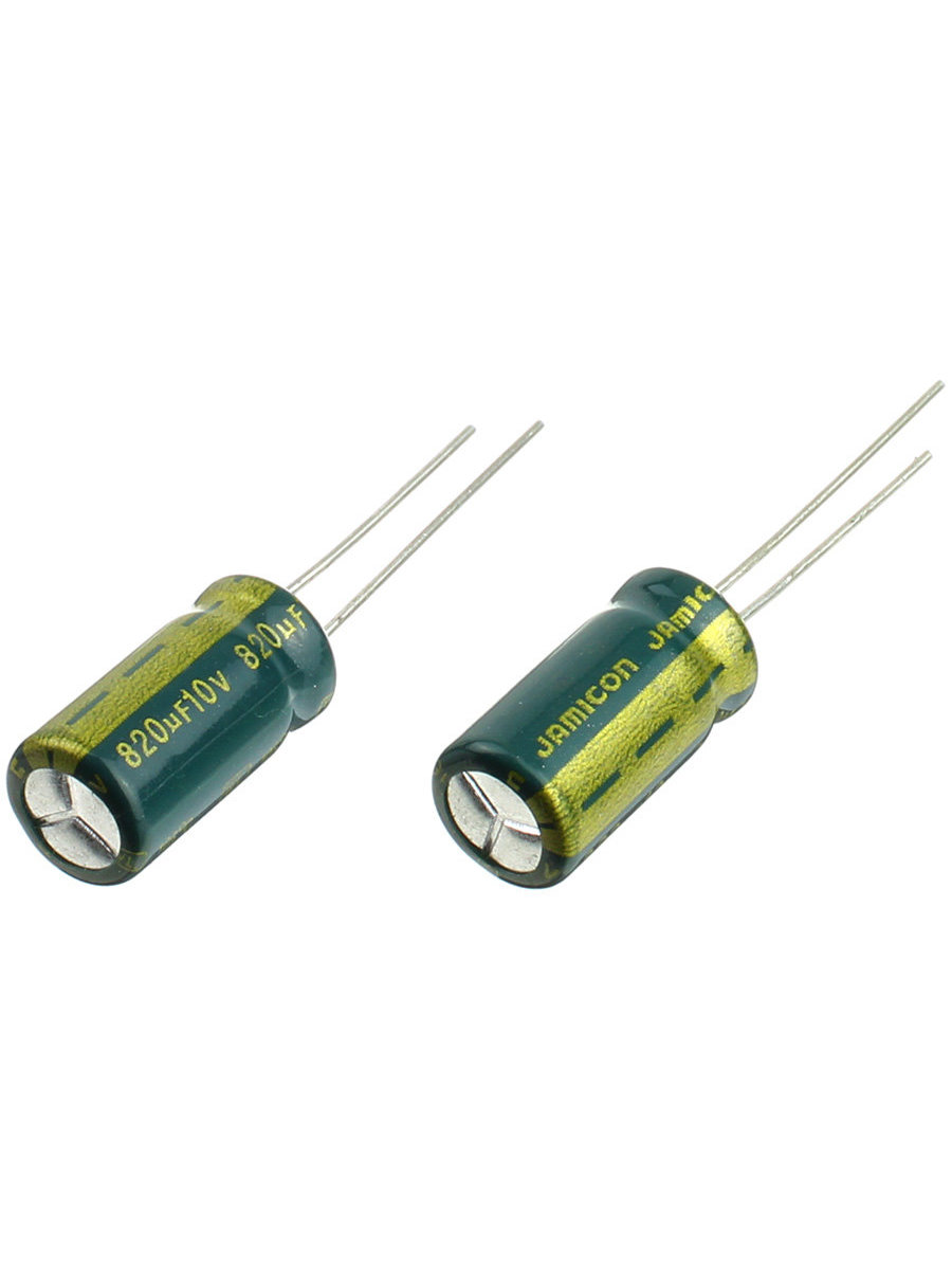 Конденсатор электролитический 820мкФ 10В, 8*16мм 105С, (упаковка 2шт) Jamicon WLR821M1AF16R, 990мА 1000час