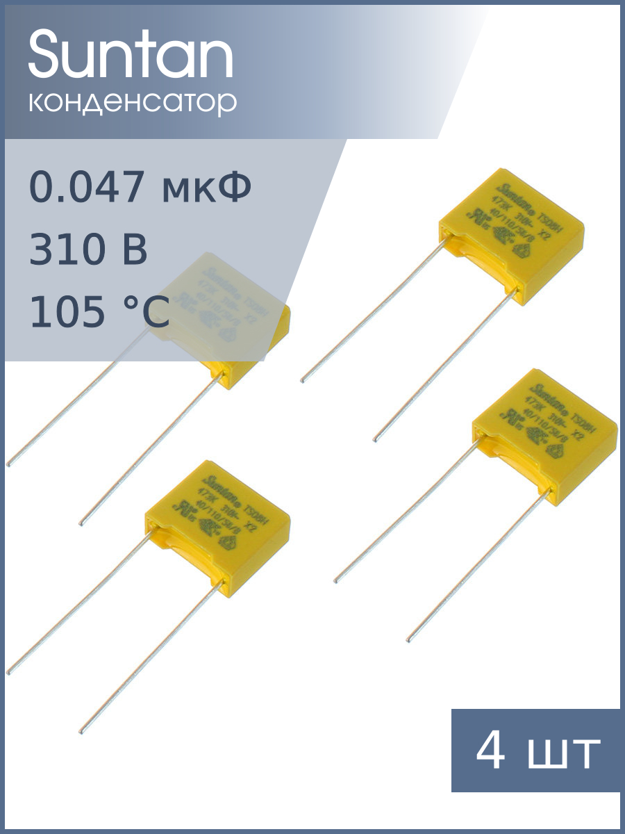Конденсатор 0.047мкф 310В X2, (упаковка 4шт), Suntan TS08H0A9473KBB0D0R