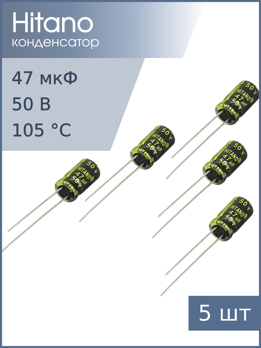 Конденсатор 47мкФ 50В 6.3*11мм 105С (упаковка 5шт) Hitano EXR470M50B 290мА 2000час