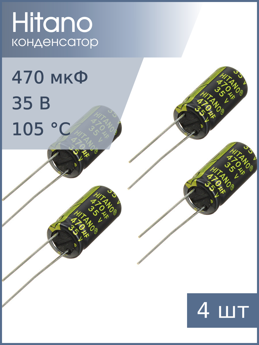 | Комплектация | Конденсатор Hitano EXR471M35B 4шт |