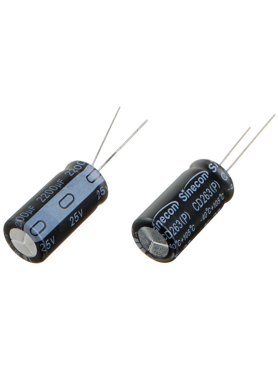 Конденсатор 2200мкФ 25В 12.5*25мм 105С Sinecon RAK222D1E12251P7AS00 2350мА 2000час94 p99 p94 p