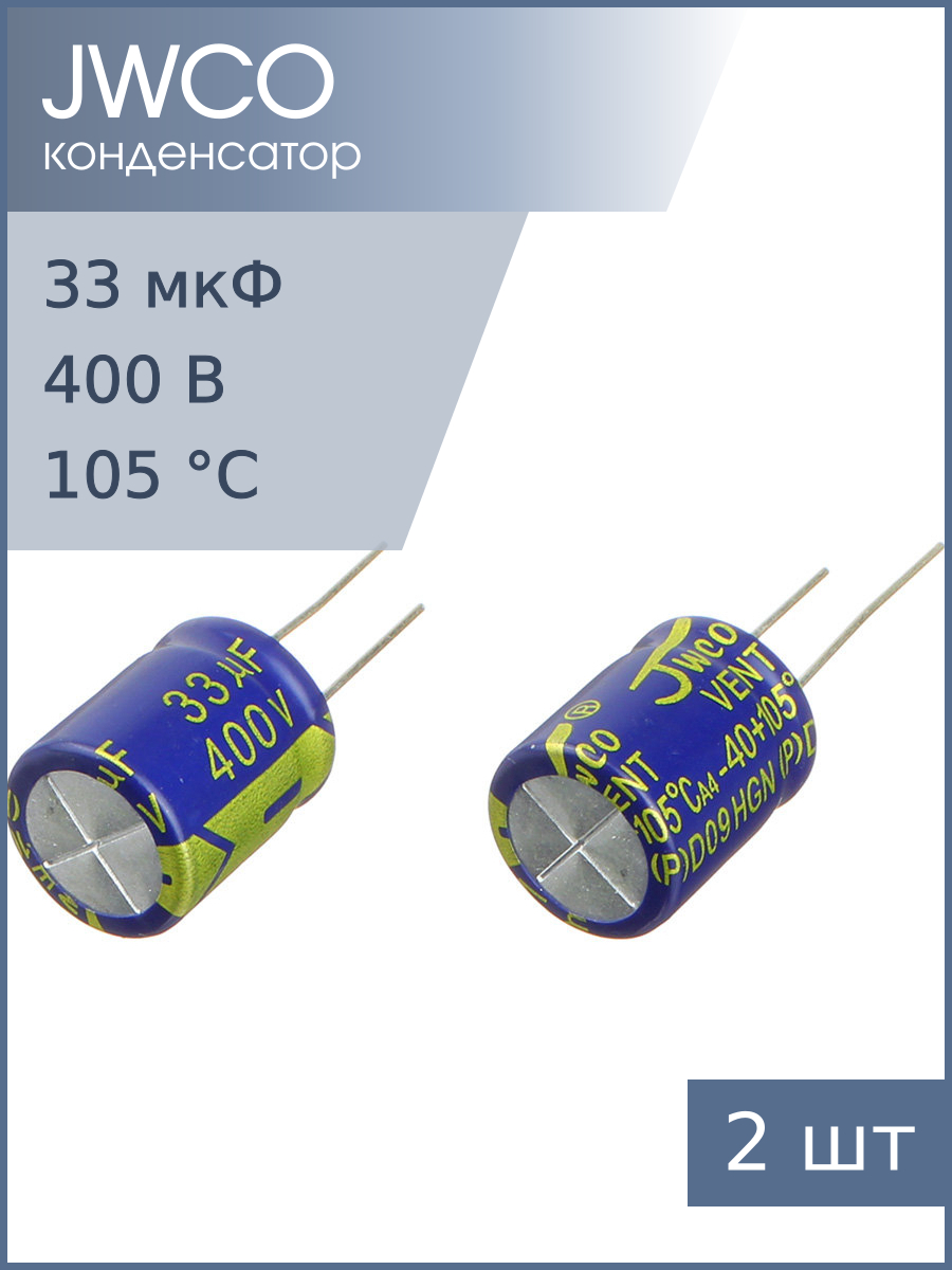 | Комплектация | Конденсатор 33мкФ 400В JWCO HGN330M2GBKJ1620EPG 2шт |