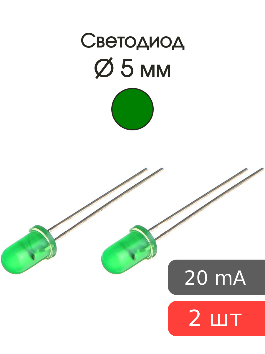 Светодиод мигающий d 5мм, зеленый 20mcd, Kingbright L-56BGD (упаковка 2шт)