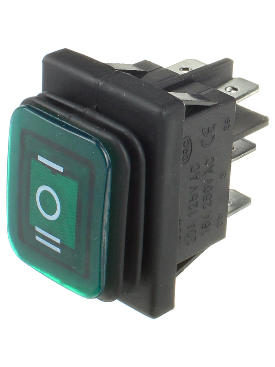 Выключатель 29*38 зеленый 6 контактов, 3 положения, влагозащищенный