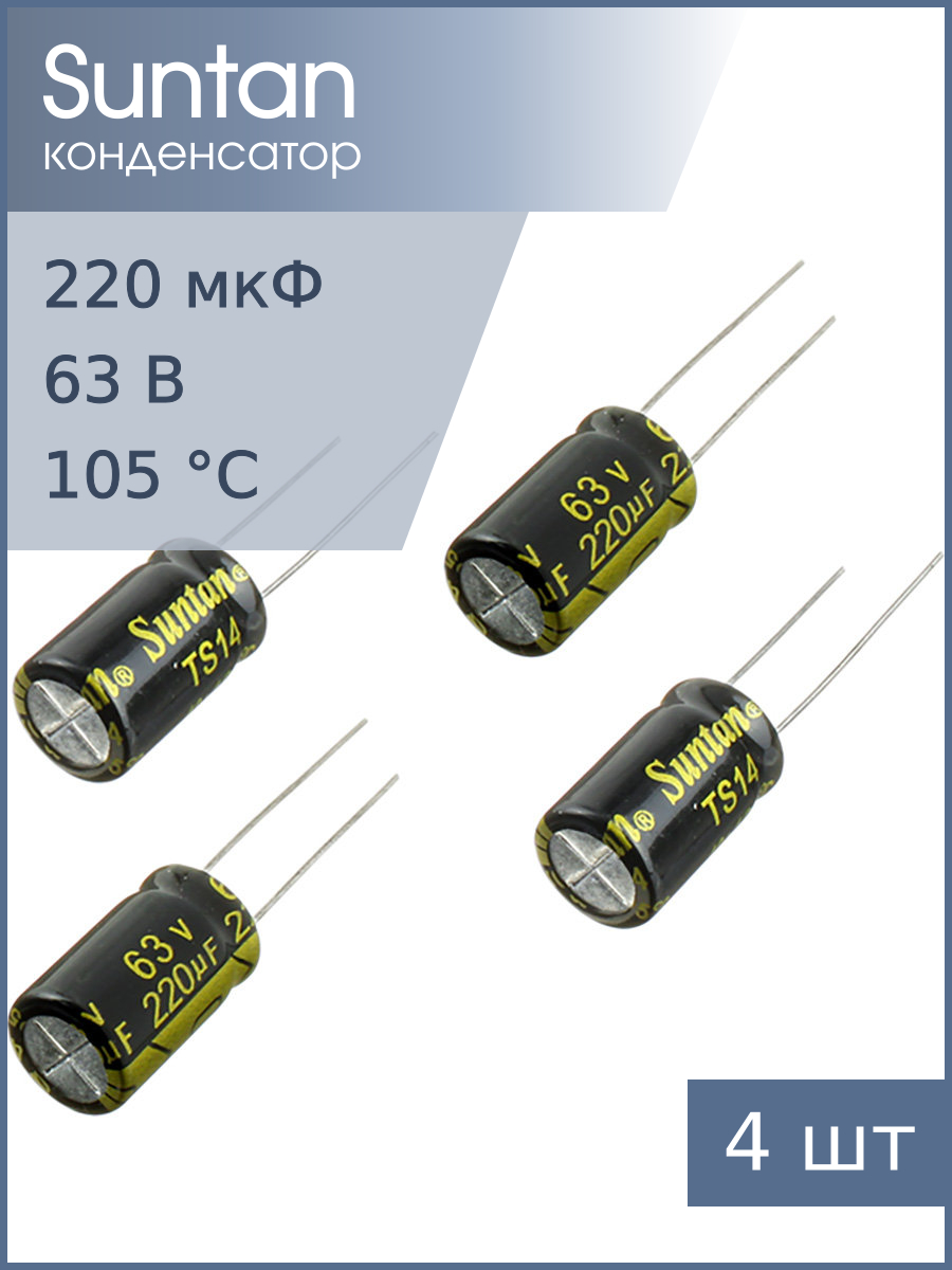 Конденсатор 220мкФ 63В, 10*17мм 105С, (упаковка 4шт) Suntan TS14011J221MSB0B0R, 270мА 2000час