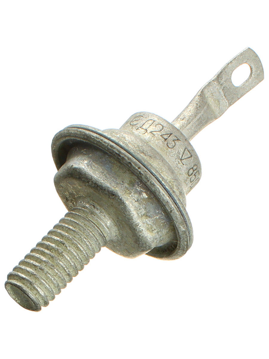 Диоды Д243А кремниевые, диффузионные, выпрямительные. Предназначены для преобразования переменного напряжения частотой до 1,1 кГц. Используются для работы в выпрямительных устройствах источников вторичного электропитания аппаратуры общего назначения. Выпускаются в металлическом герметичном корпусе со стеклянными изоляторами и винтом для крепления. Тип диода и схема соединения электродов с выводами приводятся на корпусе. Масса диодов с комплектующими деталями не более 18 г. Тип корпуса: КДЮ-11-4.