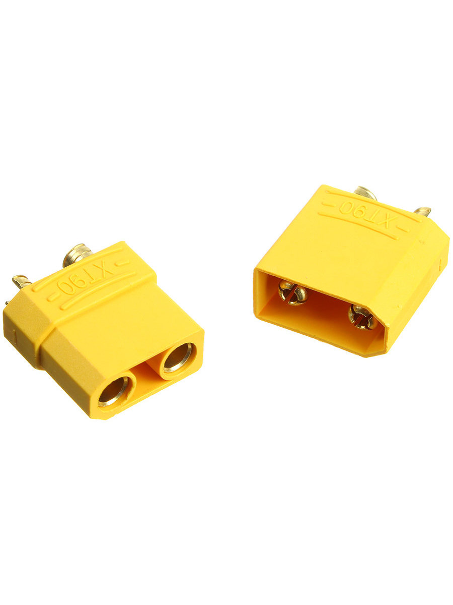 Разъем ХT90 сделан из высокотемпературного нейлона с позолоченными пружинными контактами. Обе детали и корпус формуются одновременно. ХT 90 гарантирует прочное высокоамперное соединение для токов до 40A. Ребристая поверхность разъема делает его подключение/выключение очень удобным. Низкое сопротивление на разъеме достигается за счет специальной конструкции контактных элементов. Можно использовать на любых видах моделей. Отличная замена силовым разъемам Deans.