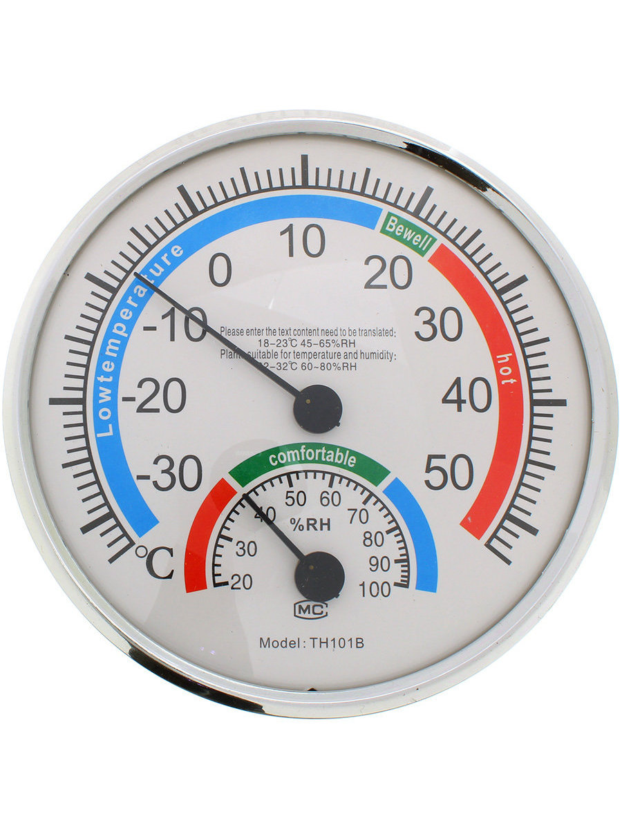 Механический прибор для измерения температуры и определения влажности со стрелочным измерителем - настольно-настенный термометр-гигрометр TH101B. Устройство имеет две шкалы измерения и может измерять не только температуру окружающей среды, но и влажность воздуха. Великолепно подходит для измерения температуры и влажности как в домашних, так в бытовых помещениях: на фабрике, в офисе, дома, на даче, в теплицах, инкубаторах. Термометр с гигрометром можно установить на столе или закрепить методом подвешивания на стене, он не требует замены батареек и будет работать много много лет, не требуя дополнительных на себя расходов.