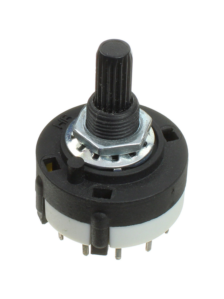 Переключатель галетный 10 положений ручки (c 3 по 12 контакты), 1 группы замыкающих контактов, вал 6мм с насечкой