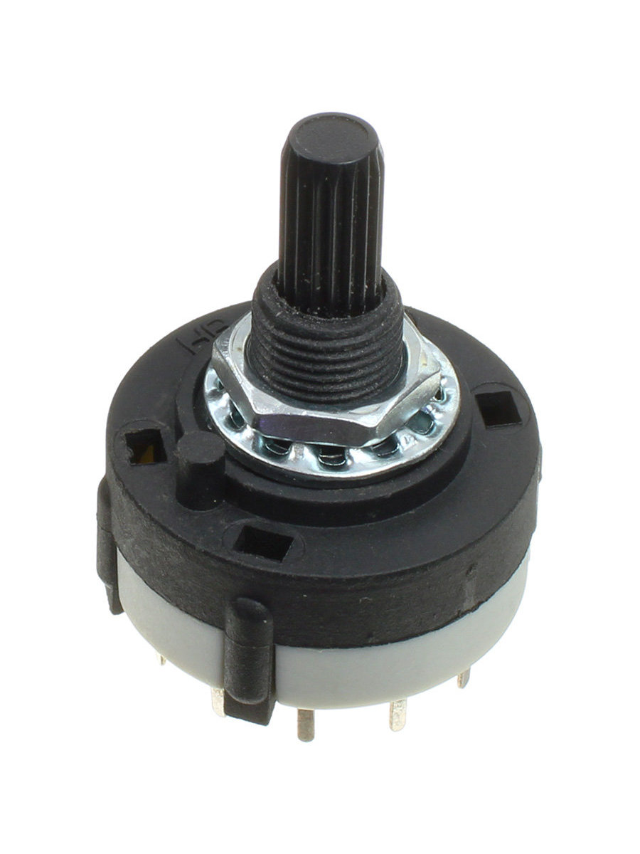 Переключатель галетный 11 положений ручки (c 1 по 11 контакты), 1 группы замыкающих контактов, вал 6мм с насечкой