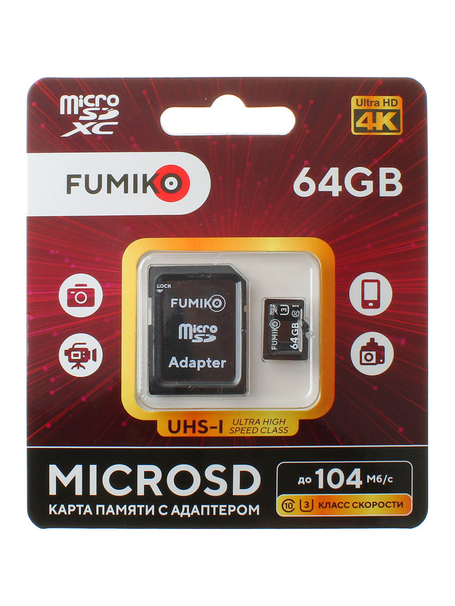 Карта памяти 64GB MicroSD Fumiko с адаптером