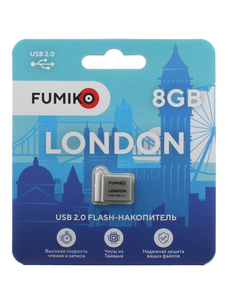 Флешка 8GB USB2 Fumiko London, серебристая