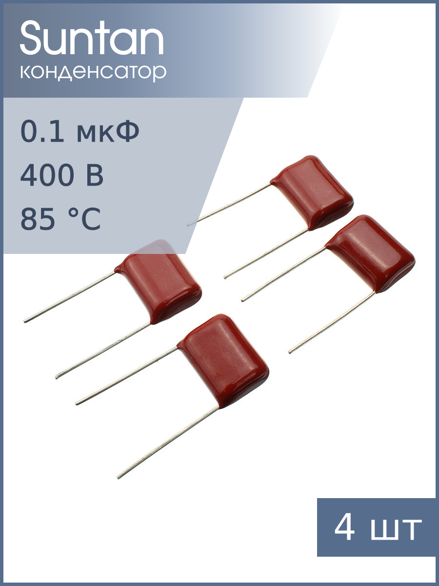 Конденсатор 0.1мкФ 400В vdc 10% (упаковка 4шт) TS02002G104KSB0D0R Suntan, К73-17 имп.