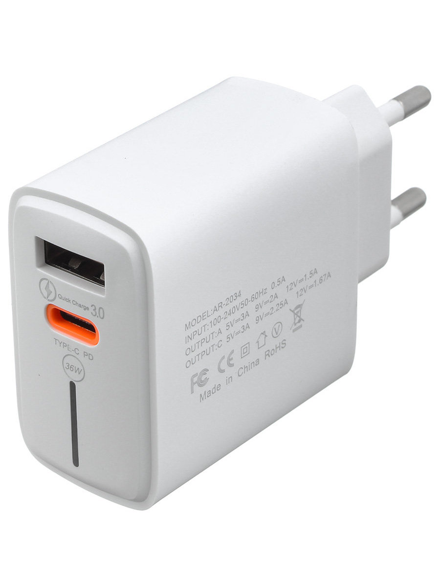 Зарядное устройство вход 220В/выход AR-2034 USB(G), TypeC(G) 5/9/12В 3А