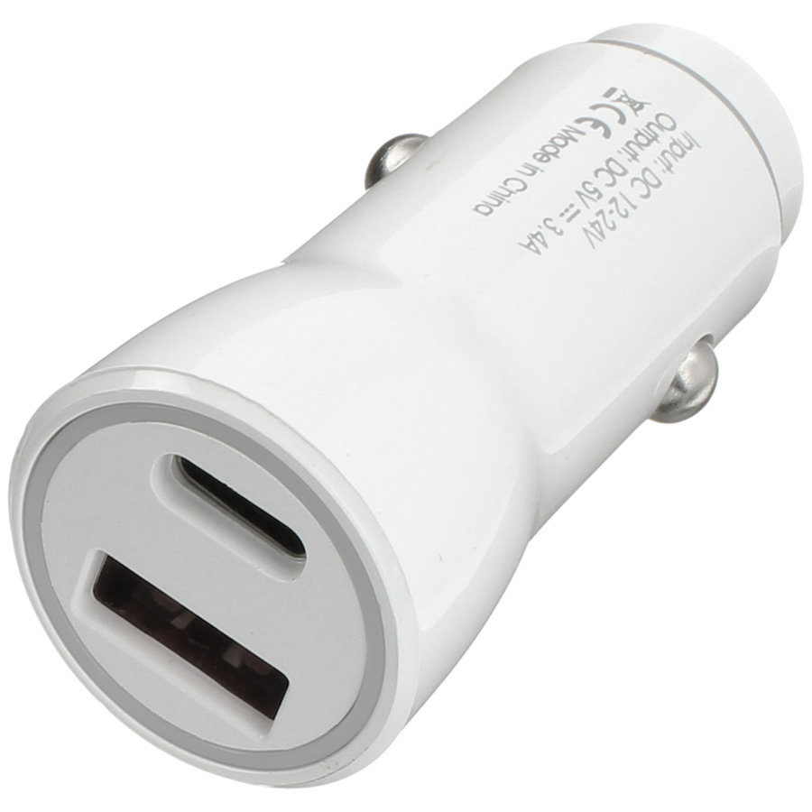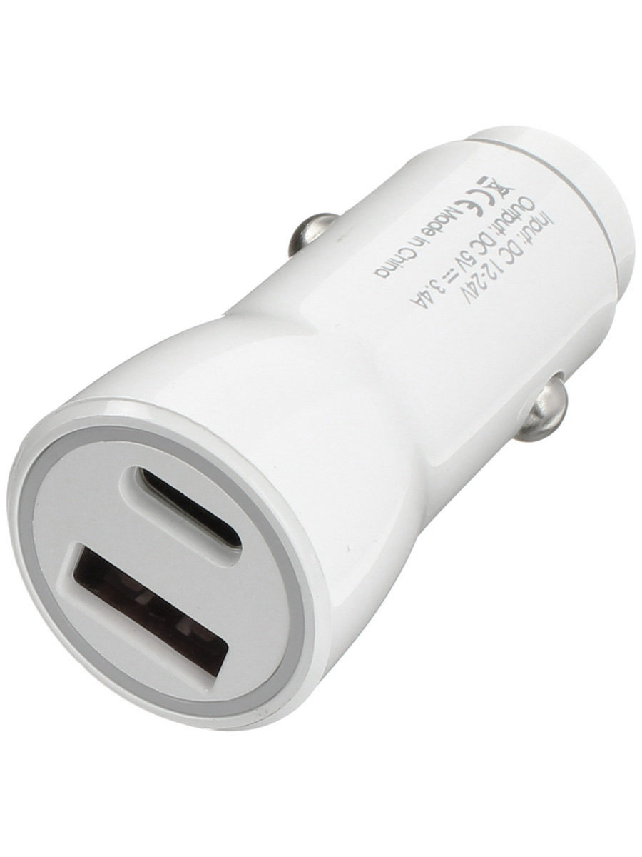 Зарядное устройство авто выход USB(G)/Type-C(G) 5В 3.4А, белое
