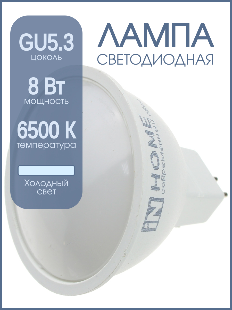 Лампа светодиодная LED-JCDR-VC 8Вт 230В GU5.3 6500К 720Лм in-home
