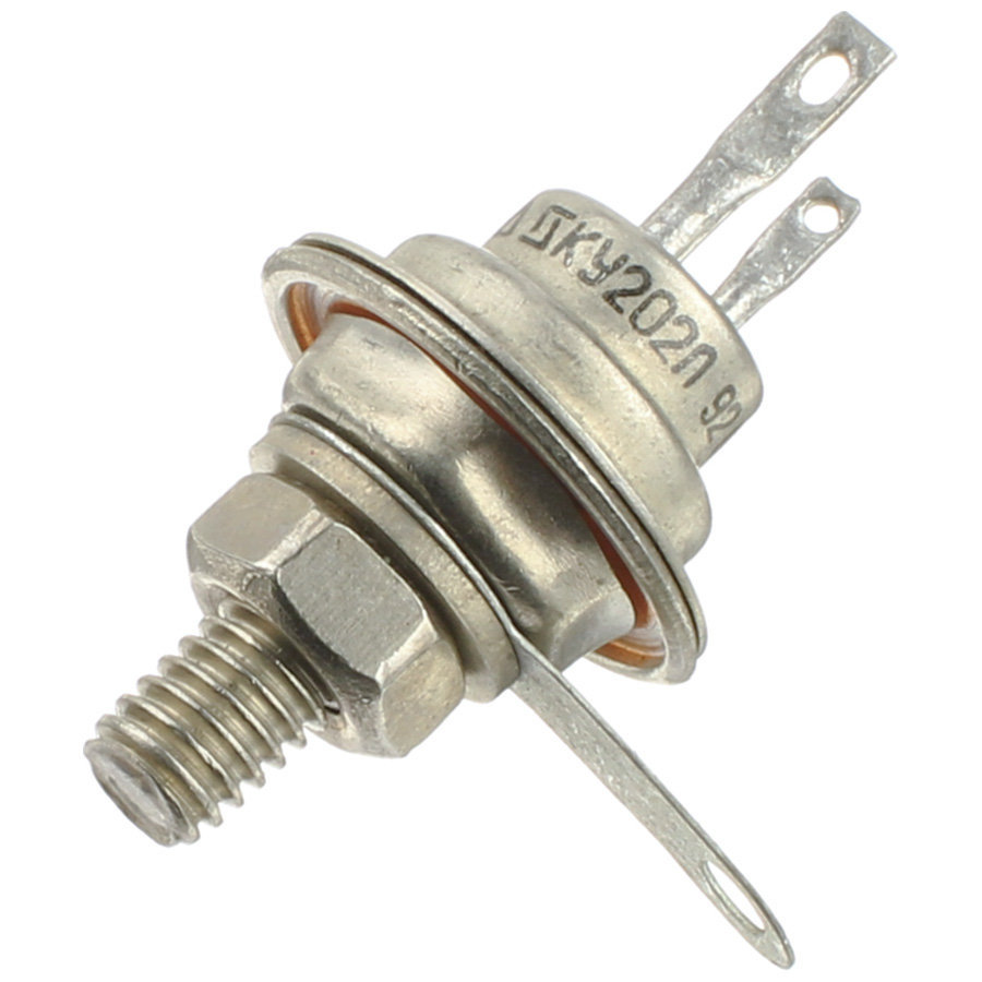 Тиристоры кремниевые КУ202Л планарно-диффузионные, структуры p-n-p-n, триодные, незапираемые. Предназначены для применения в качестве переключающих элементов устройств коммутации напряжения малыми управляющими сигналами. Используются в схемах автоматики электронной аппаратуры общего назначения. Выпускаются в металлостеклянном корпусе с жесткими выводами и винтом для крепления.