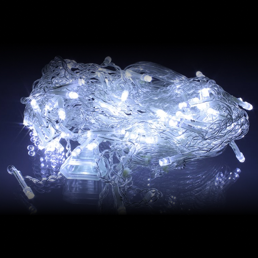 Гирлянда бахрома 100 свд 2,5*0,5 метра белая Космос CUR-100W_IP нить прозрачная