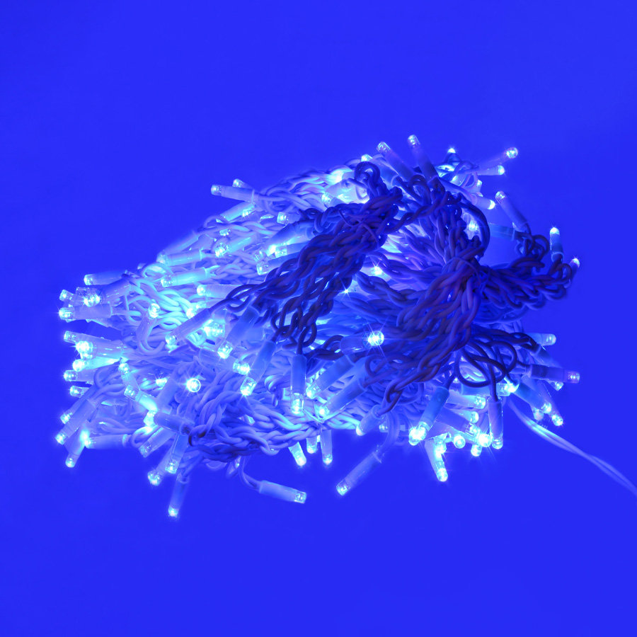Занавес 240 LED мерцание, 3х2м. Соединяемый. Синий свет. Провод белый