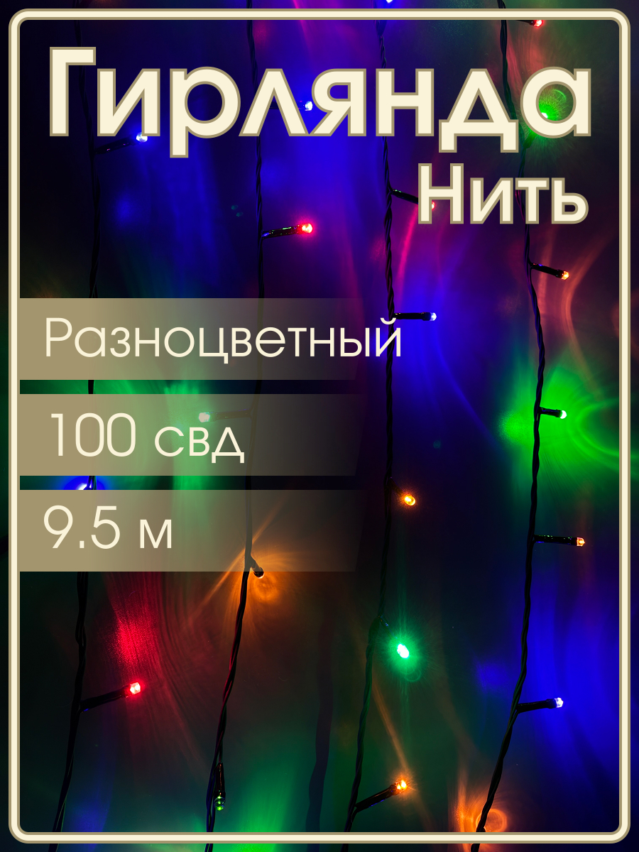 Гирлянда Navigator RGB, 100 свд, нить 9,5м, 220В