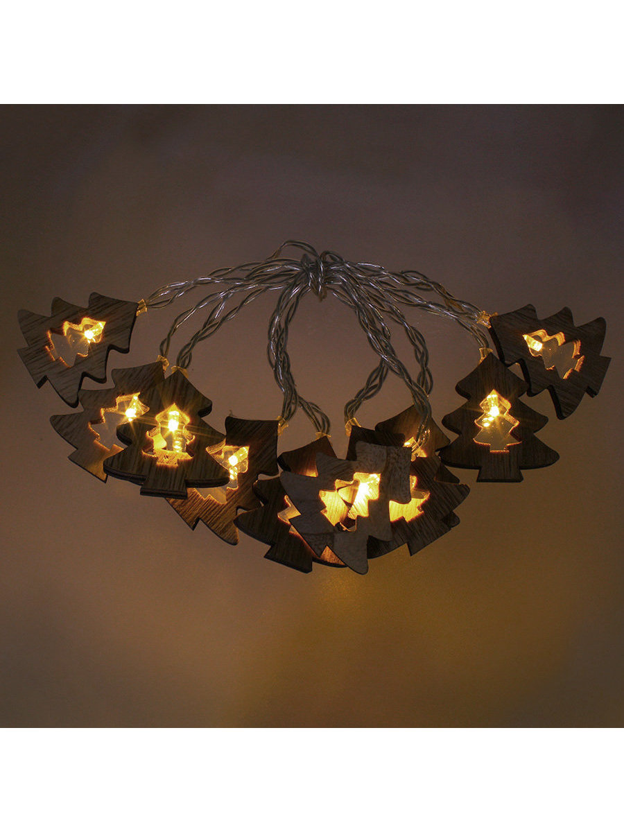 Гирлянда Navigator белая теплая, 10 свд, нить 1,8м, 2АА, деревянные ёлочки