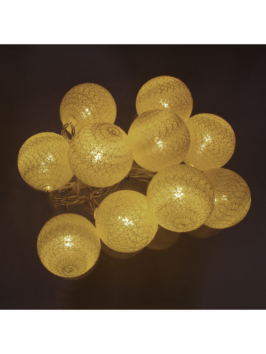 10 светодиодов, 10 золотистых тканевых шариков 50мм, расстояние между светодиодами 15см