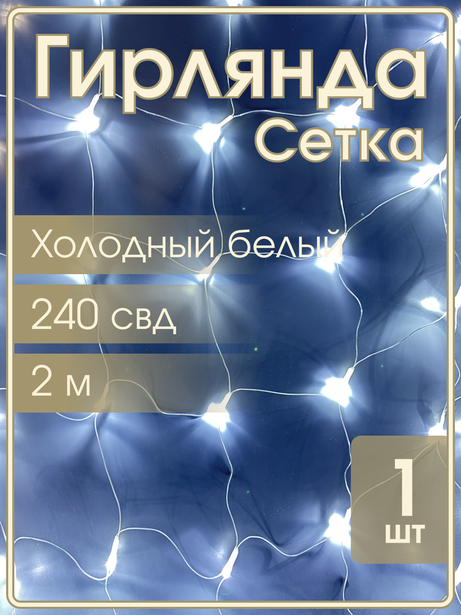 Гирлянда Navigator белая, 240 свд, сетка 2х2м, 220в