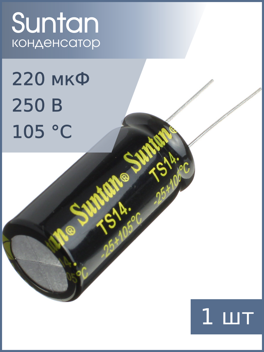 | Комплектация | Конденсатор Suntan TS14012E221MSB0C0R 1шт |