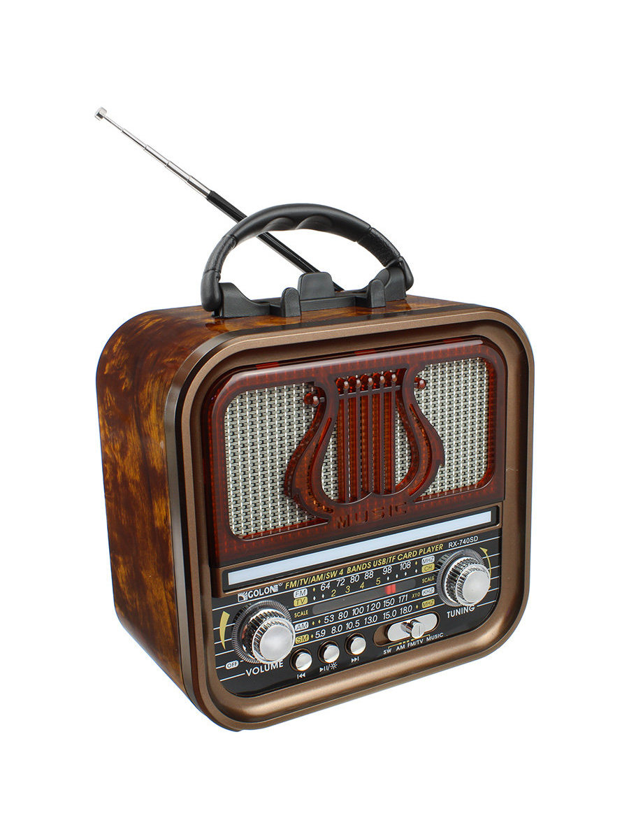Радиоприемник RX-740SD Golone, microSD, USB, bluetooth, acc, солнечная батарея, коричневое