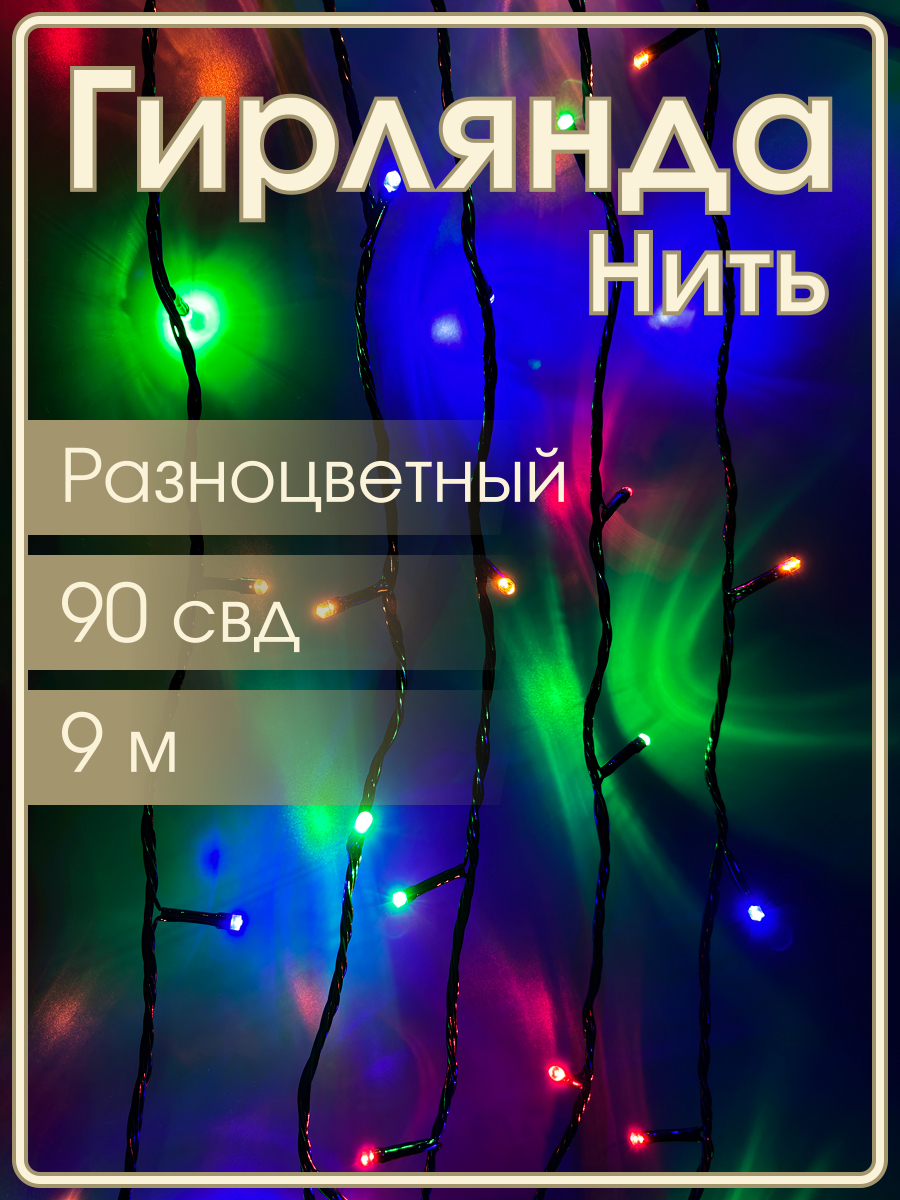 Гирлянда 90свд 9 метров, цветная, черный провод