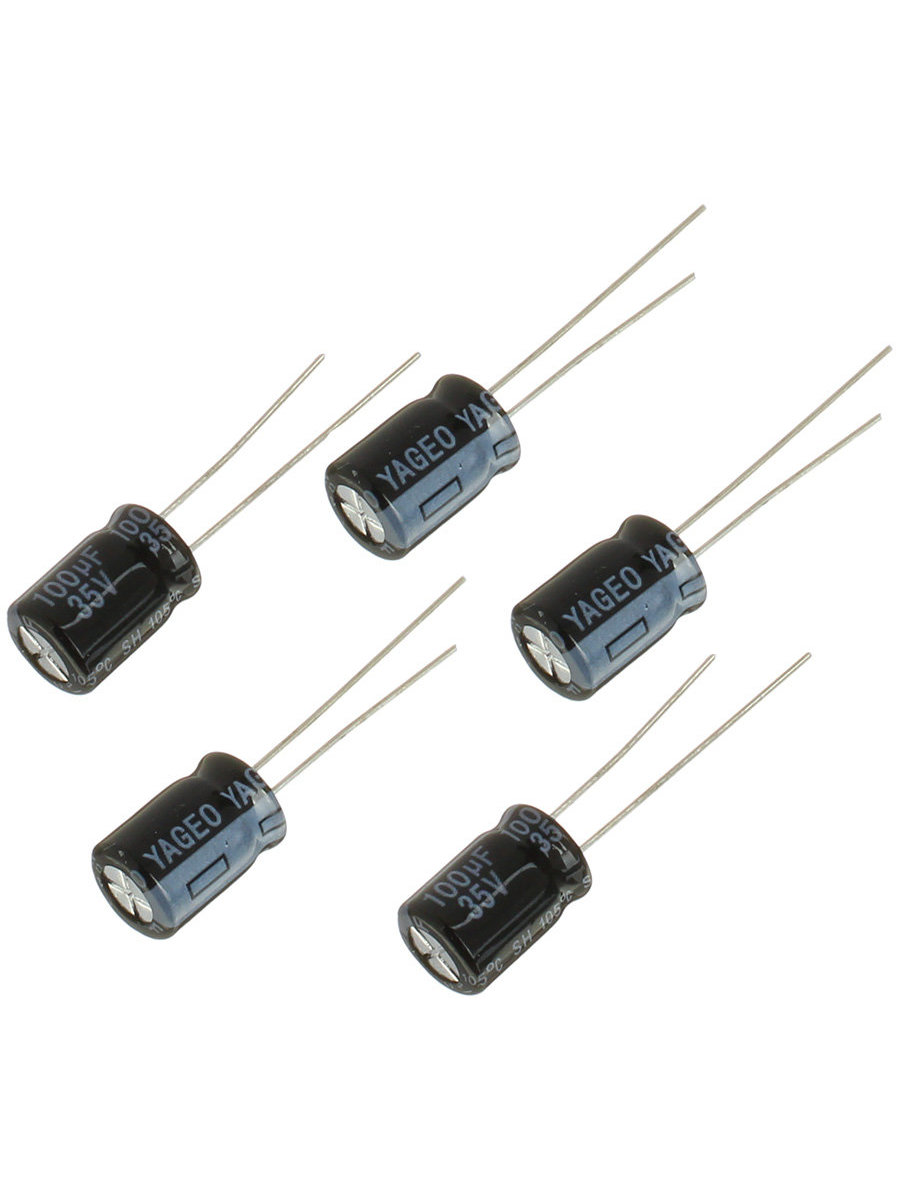 Конденсатор 100мкФ 35В 8*11мм 105С (упаковка 5шт) Yageo SH035M0100B3F-0811 190мА 2000час