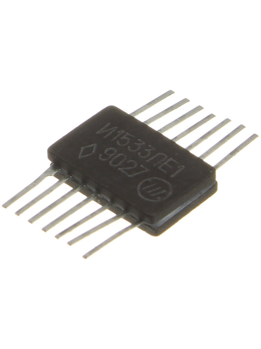 1533ЛЕ1 Цифровая интегральная схема транзисторной логики с диодами Шоттки серии ТТЛ. Микросхемы 1533ЛЕ1 представляют собой четыре логических элемента 2ИЛИ-НЕ. Предназначены для работы в узлах и блоках радиоэлектронной аппаратуры специального назначения. Выпускаются в прямоугольном металлостеклянном корпусе для монтажа на печатную плату. Маркировка микросхем и схема соединения электродов с выводами указывается на корпусе.