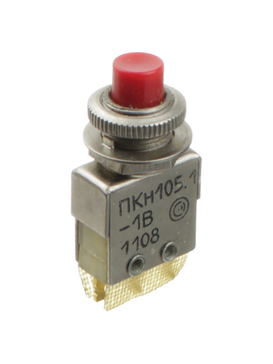 Переключатели ПКН105.1-1В кнопочные однополюсные с переключающими контактами без фиксации в нажатом положении.