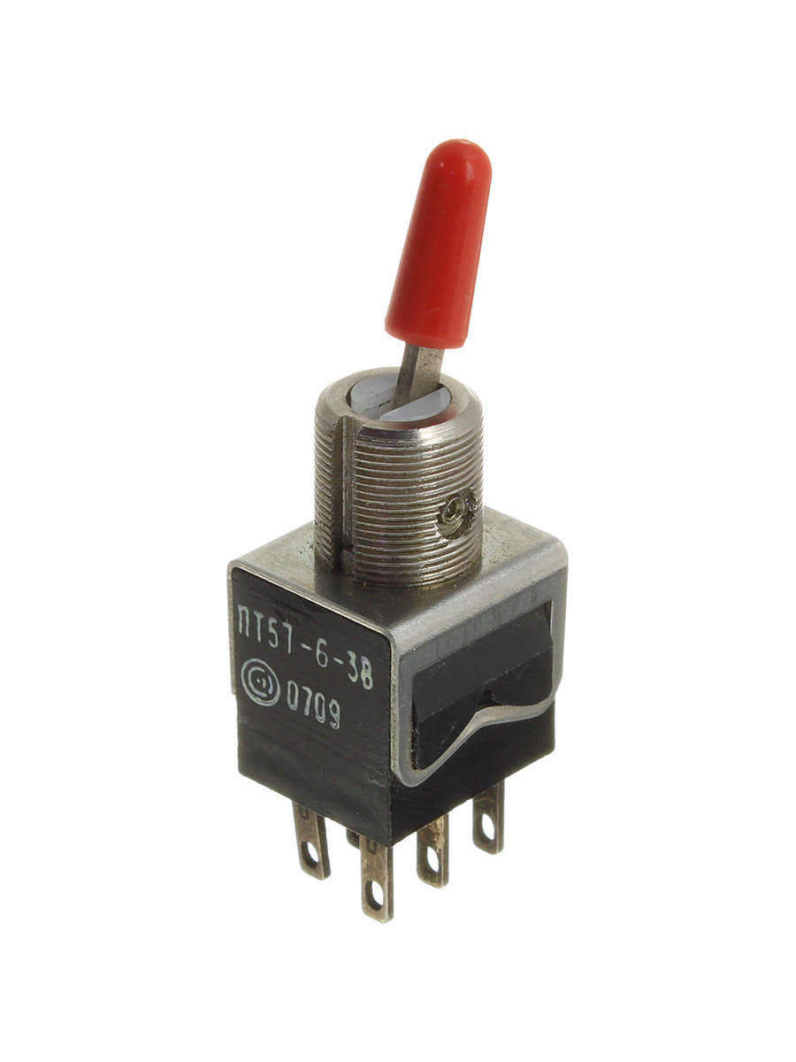 Тумблер ПТ57-6-3В миниатюрный перекидной переключатель для коммутации электрических цепей постоянного и переменного тока с частотой до 1000 Гц. Предназначен для работы в радиоэлектронной аппаратуре общего и специального назначения.