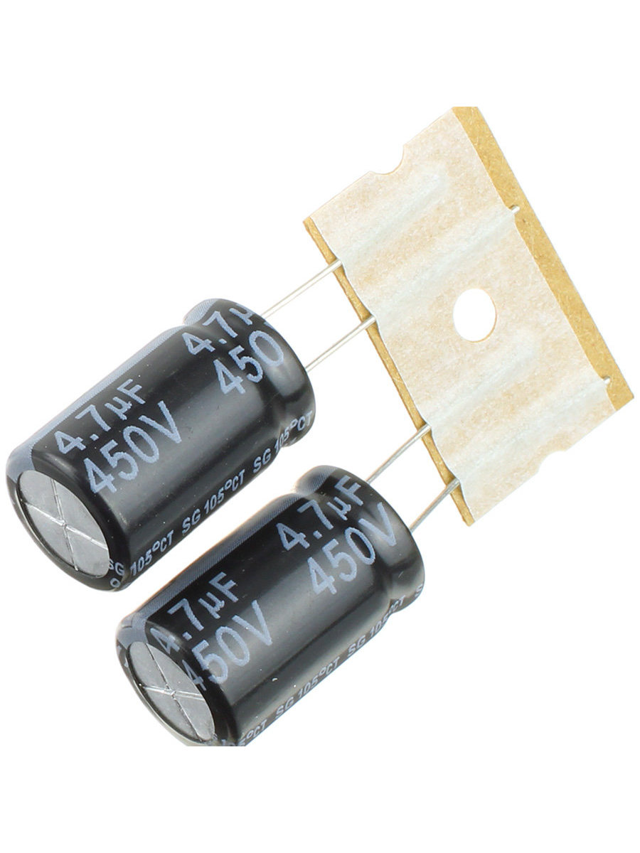 Тип конденсатора: Конденсатор алюминиевый электролитический 4.7мкФ 450В ±20% (13 х 20мм) радиальные выводы 5мм 80мА 5000час 105°С лента на катушке